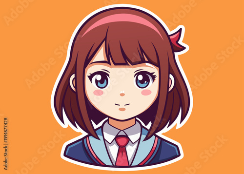 anime, girl, character, cartoon, manga, japanese, cute, adorable, smile, happy, student, school, uniform, bow, ribbon, hair, brown, blue, white, face, portrait, head, sticker, avatar, icon, illustration, graphic, design, sweet, young, female, woman, children, children, youthful, expression, comic, animation, digital, drawing, artwork, stylish, trendy, pretty