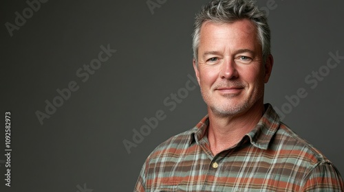 man, smiling, portrait, plaid, shirt, casual attire, confident, adult, male, expression, background, lifestyle, relaxed, friendly, hair, grey, closeup, photogenic, warmth, personality, style, fashion, confidence, light, photo, studio, emotion, happiness, character, individual, appearance, age, demeanor, casual clothes, setting, pose, charme, identity, self-assured, approachable, nature, simplicity, engagement, authenticity, connection, vibe, mood, atmosphere, representation