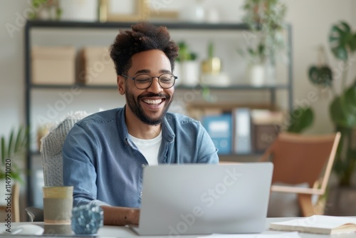 man, laptop, workspace, smiling, technology, goal, individual, organisation, engagement, motivation, study, project, innovation, inspiration, community, furniture, social, balance, remote, career, creativity, sharpened, joy, working, success, indoor, professional, connection, comfort, productivity, life events, plant, office, happiness, energy, well-being, communication, home, modern, digital, lifestyle, cheerful, design, decor, casual attire, bright, environment, culture