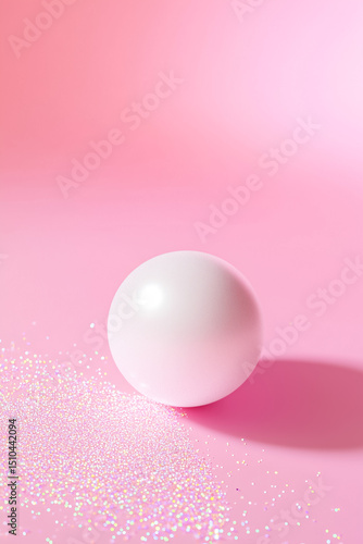 A soft pink background with a shiny white ball and scattered glitter, creating a playful and charming atmosphere.