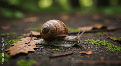 snail, forest, nature, wildlife, animal, shell, garden, slow, fauna, brown, leaf, moss, invertebrate, timberland, autumn, ground, helix, close, up, macro, detail, slimy, antennae, gastropod, creature, environment, crawling, flora, natural, park, wild, habitat, leaf, texture, pattern, spiral, curve, background, moist, damp, wood, sunlight, light, shade