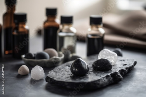 A Spa Stone Beauty Treatment with Essential Oils and sea salts. generative ai.