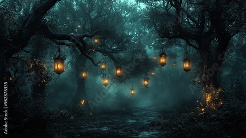 skittish, scarey, lantern, tree, autumn, horror, dark, halloween, forest, holiday, night, pumpkin, celebration, october, hanging, season, creepy, background, evil, party, burning, glowing, nature, mystery, moonlight, decoration, light, jack, lamp, mist, fog, tree branch, ghost, fall, haunted, orange, silhouette, design, chinese, trick or treat, bat, symbol, vector, illuminated, moon, illustration, image