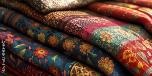 stack, colourful, fabric, flower, pile, blue, red, green, pattern, design, art, traditional, material, texture, background, textile, fashion, market, culture, beautiful, abstract, clothes, floral, decor, asia, asian, craft, silk, cotton, yellow, artistic, style, bright, ornament, sew, ethnic, embroidery, indian, store, hand-made, closeup, sale, india, nobody, white, brown, orange, black, shop