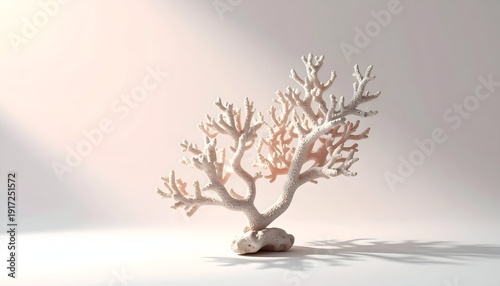 A stark white coral formation, meticulously lit, casts a shadow on a seamless background