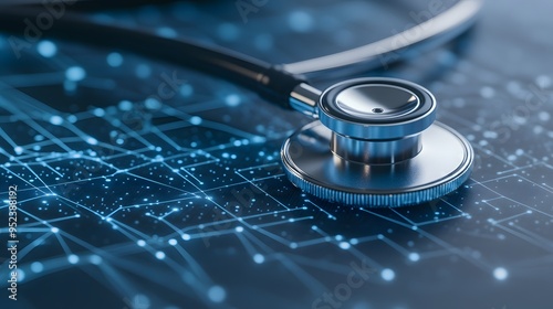 A stethoscope on a futuristic digital interface, symbolizing technology and healthcare integration in modern medicine.