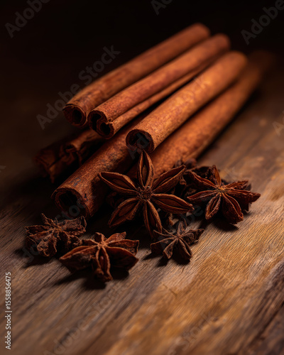 A Still Life Composition of Aromatic Cinnamon and Star Anise Spices