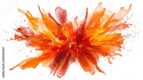 A stunning abstract burst of fiery hues in orange and red, forming a dramatic and radiant explosion, isolated on white
