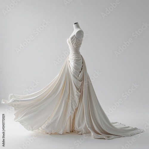 gown, minimalist, studio, fashion, design, fabric, elegance, flow, bright, display, textile, style, clothing, craftsmanship, beauty, artistry, runway, sewing, modern, visual, aesthetic, atmosphere, simplicity, silhouette, white, decor, ambient, creative, dress, occasion, inspiration, trend, bridal, tailored, chic, luxurious, showcase, mannequin, presentation, attire, art, monochrome, timeless, evening dress