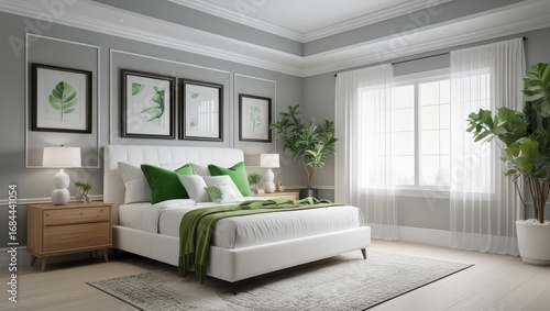 bedchamber, interior, decor, white, green, light, art, plant, window, modern, design, furniture, neutral, grey, simple, comfortable, peaceful, calming, elegant, sophisticated, cosy, home, minimalist, stylish, natural, tropical, leaf, bed, pillow, curtain, beautiful, colourful, bright, creative, professional, decorative, vibrant, stunning, amazing, marvellously, fantastic, gorgeous, lovely, charming, attractive, impressive, spectacular