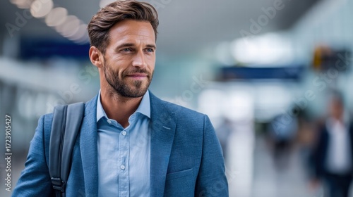 businessman, man, business, success, travel, aerodrome, commute, stylish, photogenic, male, traveling, suit, jacket, professional, confident, looking, thoughtful, well-dressed, smart, clothing, modern, elegant, facial hair, career, destination, arrival, departure, journey, building, outdoors, daylight, urban, blurred, background, sharpened, positive, lifestyle, active, smiling, portrait, person, adult, 1, city, face, guy, cheerful, happy, light