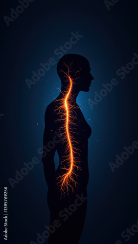 A stylized image showing a spine with neural pathways, highlighting Vagus Nerve Stimulation for medical or educational purposes.