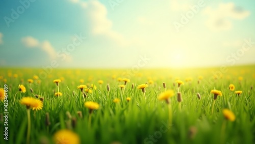 flower, grass, field, nature, spring, summer, yellow, meadow, sunlight, sky, cloud, beauty, peace, calmness, vibrant, green, lush, blooming, wildflower, scenic, landscape, idylli, gold, bright, fresh, summer, horizon, warm, sunshine, springtime, calm, peaceful, serene, pastoral, countryside