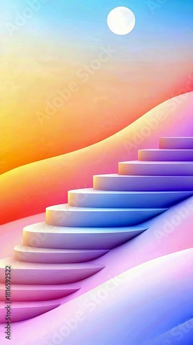 staircase, step, moon, sky, gradient, abstract, surreal, dreamy, aethereal, minimalist, modern, architecture, path, journey, ascent, climb, future, hope, progress, concept, design, colours, light, smooth, curved, organic, fantasy, digital artwork, illustration, background, zen, peaceful, calm, serene, bright, vibrant, pastel, celestial