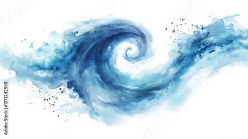 A swirling blue wave with watercolor textures, conveying a sense of motion and fluidity against a white background.