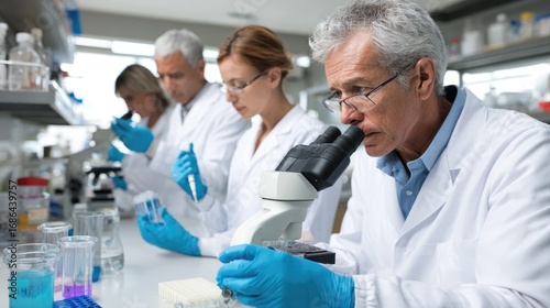 A team of dedicated scientists collaboratively conducts experiments in a modern laboratory, utilizing advanced equipment and technology to foster discovery and innovation in resear