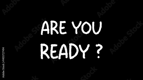 A text animation with intentional digital artifacts and glitches: Are you ready? 4k animated on black background