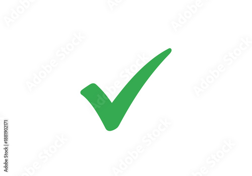 A thick handdrawn style green checkmark symbol centered on a white background