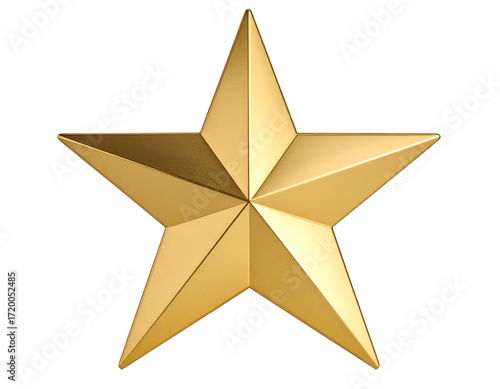 A three-dimensional golden star with sharp edges and a reflective , symbolizing achievement and excellence.