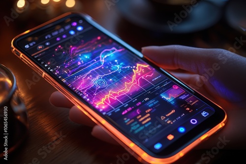 smartphone, graph, chart, closeup, technology, night time, monitoring, innovation, statistic, information, modern, business, analysis, electronic, mobile device, touch screen, glowing, vivid colors, workspace, futuristic, finance, software, research, communication, lighting, hand, intimate, high technology, lifestyle