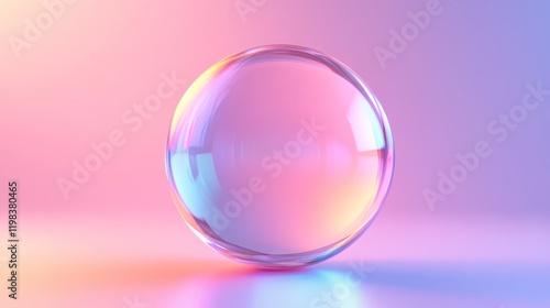 A transparent ball floating in the air with a pastel background, rendered in 3d