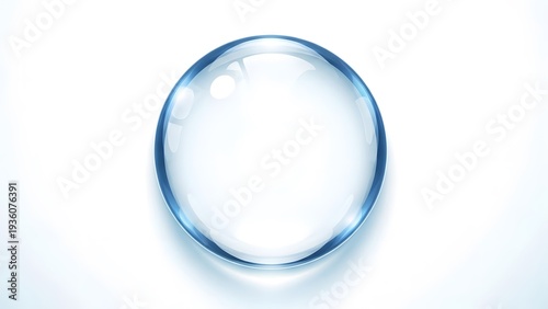 A transparent glass widget with a blue rim sits isolated on a white background