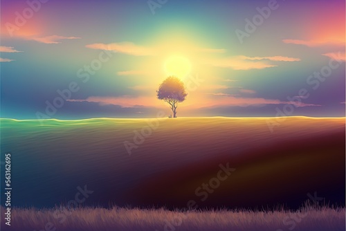 A tree in the sunset, soft colour background. Ai Generative art