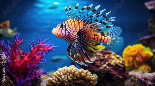 A tropical fish with shiny scales in a coral reef, highlighting the diverse colors underwater generative ai