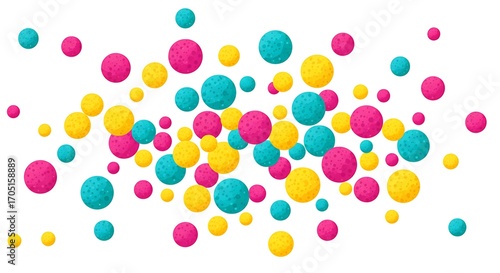 A vector illustration of colorful bubbles mixed with styrofoam like texture, glossy and reflective, centered on a clean white background