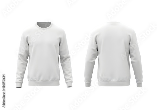A versatile white sweatshirt mockup, presented in both front and back views. Isolated on white or transparent background. PNG format.