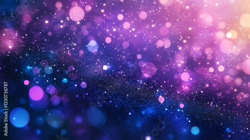 A vibrant, abstract background featuring shimmering bokeh lights in shades of purple and blue, creating a dreamy atmosphere.