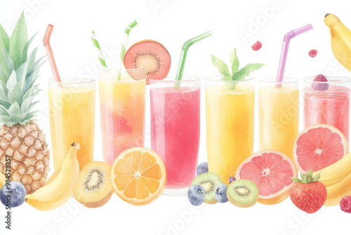 fruit, juice, glasses, vibrant, arrangement, colourful, honed, refresh, summer, drink, banana, wellness, party, citrous, natural, delight, favor, berry, beverage, liquid, sunshine, healthy, orange, lemonade, mango, strawberry, raspberry, vitamin, pineapple, lifestyle