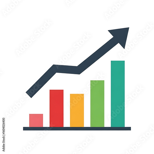 A vibrant bar chart with an ascending arrow, symbolizing financial growth and positive business trends.