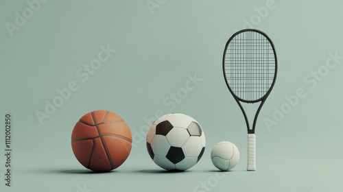 A vibrant collection of sports equipment including a basketball, soccer ball, tennis racket, and volleyball showcasing the diversity of sports.