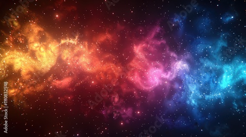 A vibrant cosmic scene showcasing colorful nebulae and stars in a vast galaxy.