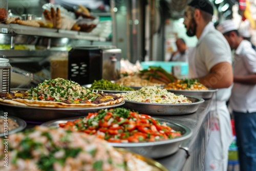 food, dish, market, vegetable, herb, spice, cookery, colours, plate, preparation, ingredient, fresh, cooking, street, cultural, dining, favor, aromatic, healthy, variety, traditional, culinary, meal, texture, garnish, presentation, chef, service, stall, local, vibrant, salad, rice, meat, pepper, onion, tomatoes, parsley, atmosphere, serving, community, life events, hospitality, enjoyment, gathering, ambience, taste, freshness
