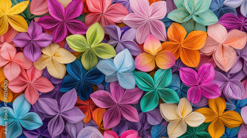 flower, pattern, intricate, vibrant, display, numerous, origami, folded, paper, random, appealing, design, colours, mix, pink, orange, yellow, green, blue, purple, unique, shade, entire, frame, view, detailed, exam, fold