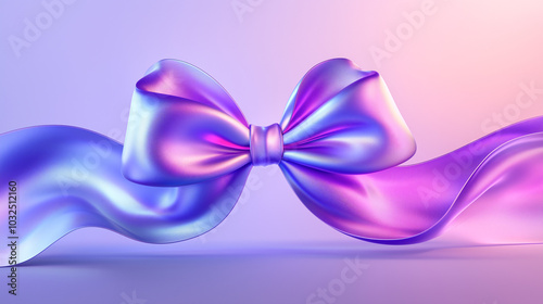 three-dimensional, bow, iridescent, purple, blue, pink, elegant, futuristic, fashion, flowing, modern, abstract, shiny, texture, metallic, vibrant, digital artwork, smooth, ribbon, soft light, sleek, luxurious, graphic design, gift, celebration, design, illustration, colours