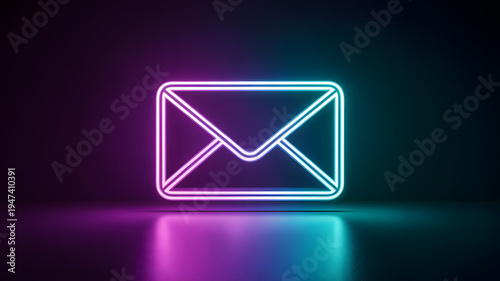 envelope, mail, electronic mail, message, icon, symbol, neon, glowing, light, electronic, digital, communication, cyberspace, online, graphic, design, abstract, technology, cyberspace, contact, receive, send, modern, futuristic, purple, blue, pink, vibrant, bright, dark, background, surface, render, three-dimensional, illustration, notification, web, app, interface, business, service, marketing, network, connection