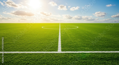 soccer, field, grass, green, sport, game, sunshine, blue skies, white line, summer, play, athletic, competition, training, recreation, football, team, athlete, landscape, environment, grassy, turf, beautiful, nature, healthy, leisure, fitness, arena, pitch, stadium, activity, physical exercise, motion, exercise, teamwork, sportsmanship, fun, energy, outdoors, goal, vibrant, sunny