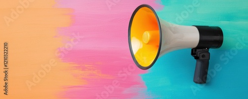 A vibrant megaphone against a colorful background, symbolizing communication and announcements.