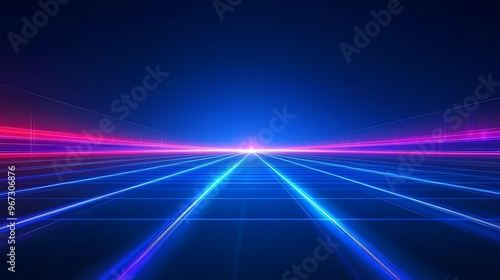 A vibrant neon landscape with glowing lines and a deep blue background, perfect for tech and futuristic designs.