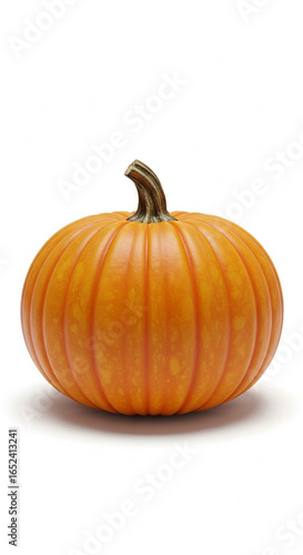 A vibrant orange pumpkin, perfectly ripe, sits on a white background.
