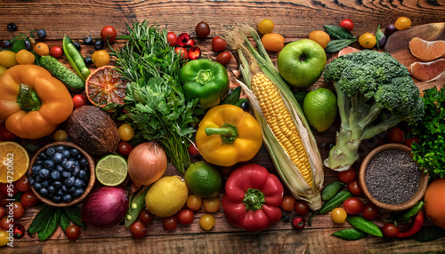 vegetable, fruit, fresh, vibrant, overhead, view, assortment, wooden, table, kitchen, healthy, eating, natural, colours, organic, produce, colourful, variety, food, raw, diet, vegan, vegetarian, nourishment, balanced, clean, cooking, ingredient, rustic, arrangement, lifestyle, whole, wellness, garden, farm, harvest, market, greener, red, yellow, orange, texture, freshness, appetising, wholesome, summer, autumn