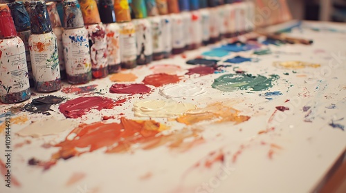 paint, palette, colours, art, creative, brush, artistic, craft, studio, texture, design, mixing, material, tool, splatter, vibrant, hue, acrylic, oil, water, technique, inspiration, expression, workshop, surface, medium, composition, artwork, background, hobby, easel, craftsmanship, visual, imagination, detail, project, expressionism, brushwork, shade, tone, cleanup, mess, arrangement, supply