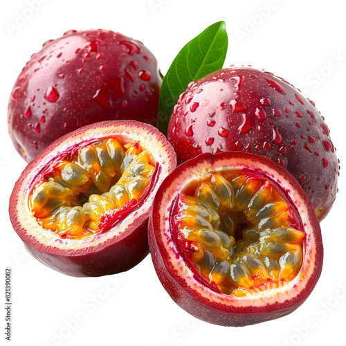 A vibrant passion fruit, isolated from the backdrop, cut out from its surroundings. Concept of exotic flavor. Generative Ai.