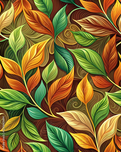 leaf, pattern, nature, autumn, foliage, curve, stylised, calmness, shape, warmth, detailed, harmony, greenery, lush, inspiration, vibrant, creativity, seasonal, earth, growth, scenery, elegant, theme, wallpaper, artistry, variety, rustic, craft, botanical, richness, art, floral, cheerful, design, texture, decor, colourful, aesthetic, beauty, colours, environmentally friendly, environment, background, natural, landscape, organic
