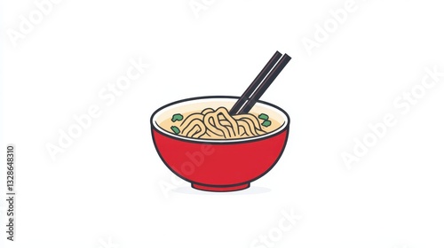 A vibrant red bowl filled with noodles is accompanied by black chopsticks, highlighting the simplicity and richness of Asian cuisine