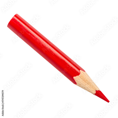 A vibrant red colored pencil, isolated against a black background, showing its sharp tip