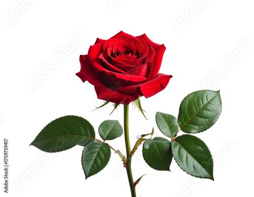 rose, red, flower, flower petals, leaf, stem, bloom, nature, beauty, isolated, love, romance, passion, gift, elegant, detail, closeup, macro, single, dark, background, black, velvet, fragrant, texture, botanical, flora, vibrant, full, delicate, fresh, honed, smooth, natural, bright, crimson, closeup, spring, summer, garden, growth, foliage, green, open, center, artistic, soft, gentle, image
